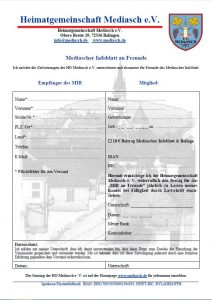 Beitrittserklärung, Änderungsmeldung, „Mediascher Infoblatt“ an Freunde