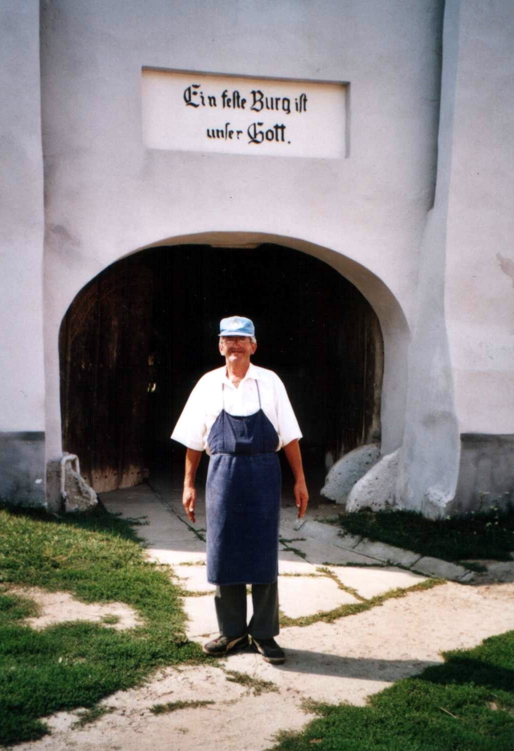 Hetzeldorf 2003, Hansonkel (Johann Klatt), ein Bewohner des Altenheims hütet die Burg und führt Besucher.